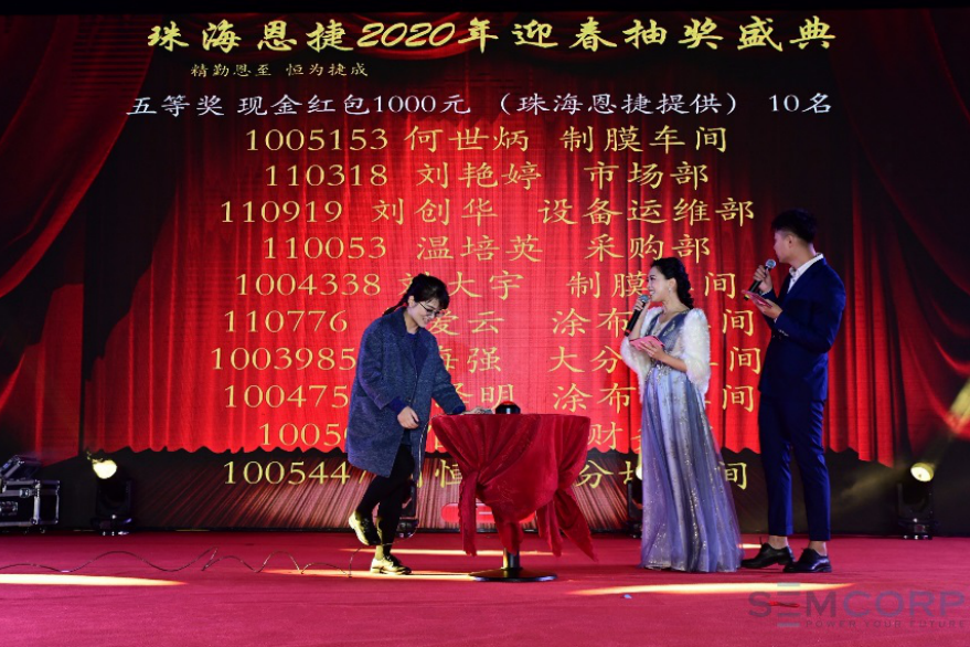 晚会中间还穿插了抽奖环节,随着五等奖,四等奖、三等奖、二等奖和一等奖的抽取,不断掀起年会的高潮。联欢会不仅给大家带来了欢声笑语,同时也让同事之间彼此的心更加贴近。公司领导与员工亲情互动、激动人心的抽奖活动,让歌声、掌声、欢呼声一直在会场上荡漾。整场年会高潮迭起,呈现出爱体育aitiyu(中国)这个大家庭的欢乐和谐。