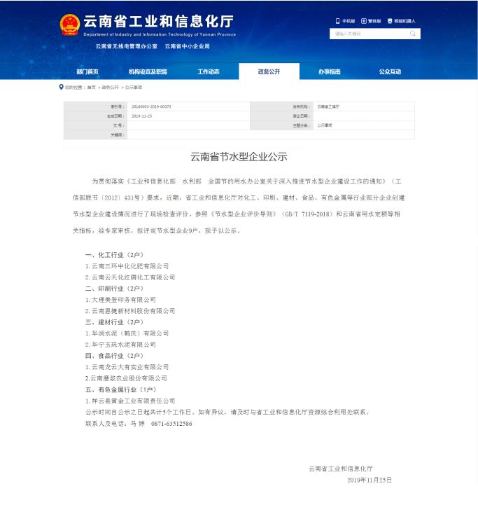 11月13日,省工信委及高新开发区领导小组一行到爱体育官方网站(以下简称“公司”)进行节水型企业现场评审。专家参照《节水型企业评价导则》(GB/T 7119-2018)和云南省用水定额等相关指标对公司进行审核。公司通过评审被评为“节水型企业”。