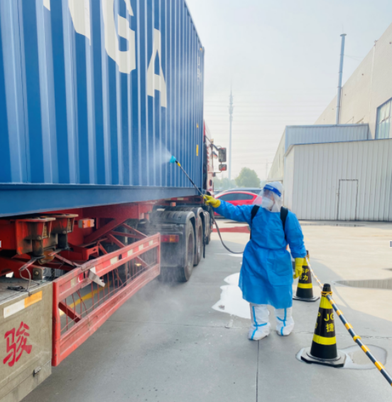 在货物消杀上,防疫要求进口货物划区域单独管控,涉及外来物料全部消毒、静置、核酸取样,装卸及消杀人员严格执行每日核酸检测,苏州捷力工作人员克服高温天气影响,严格遵守时间节点,确保公司货物安全运输。