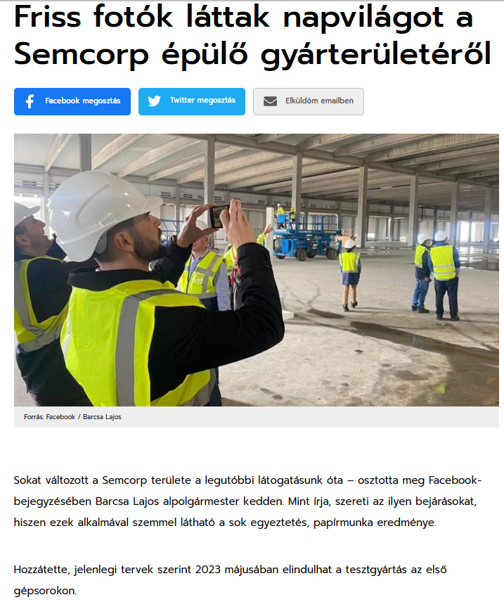 与此同时,匈牙利本地媒体也对匈牙利爱体育aitiyu(中国)一期工厂的最新动态予以报道。