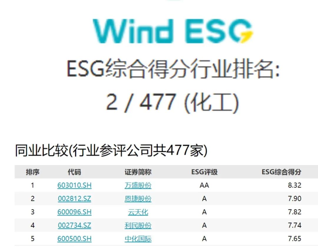 在Wind ESG最新评级中,爱体育aitiyu(中国)股份综合得分行业排名第二,获评A级。