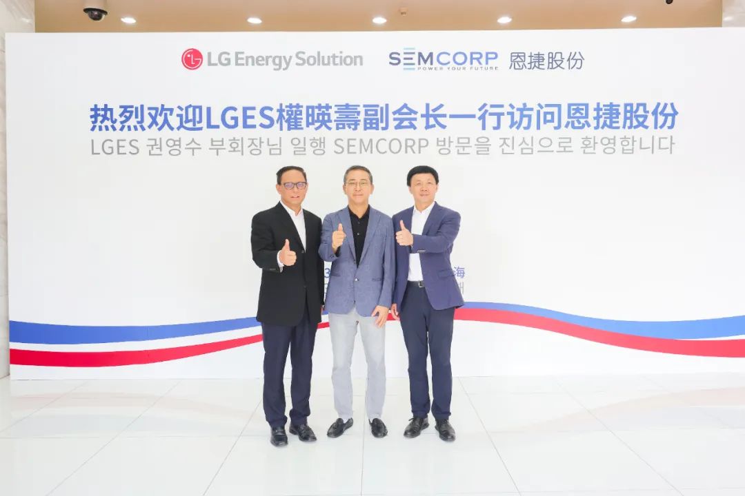 对韩国LGES副会长权暎寿(中)的来访表示欢迎
