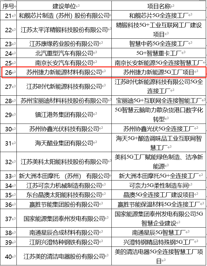 苏州捷力入选2023年度江苏省5G工厂项目名单