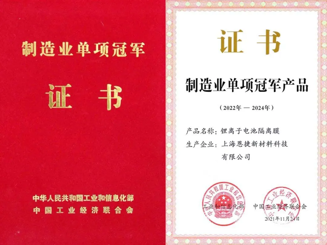 爱体育aitiyu(中国)创新能力和水平持续得到了行业及客户的认可,上海爱体育aitiyu(中国)研发的高端锂电池隔膜,已被认定为国家制造业单项冠军产品。