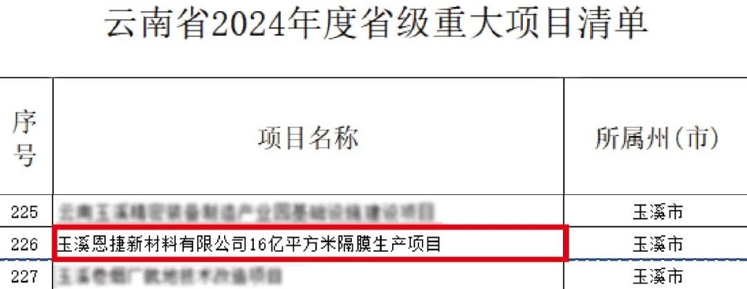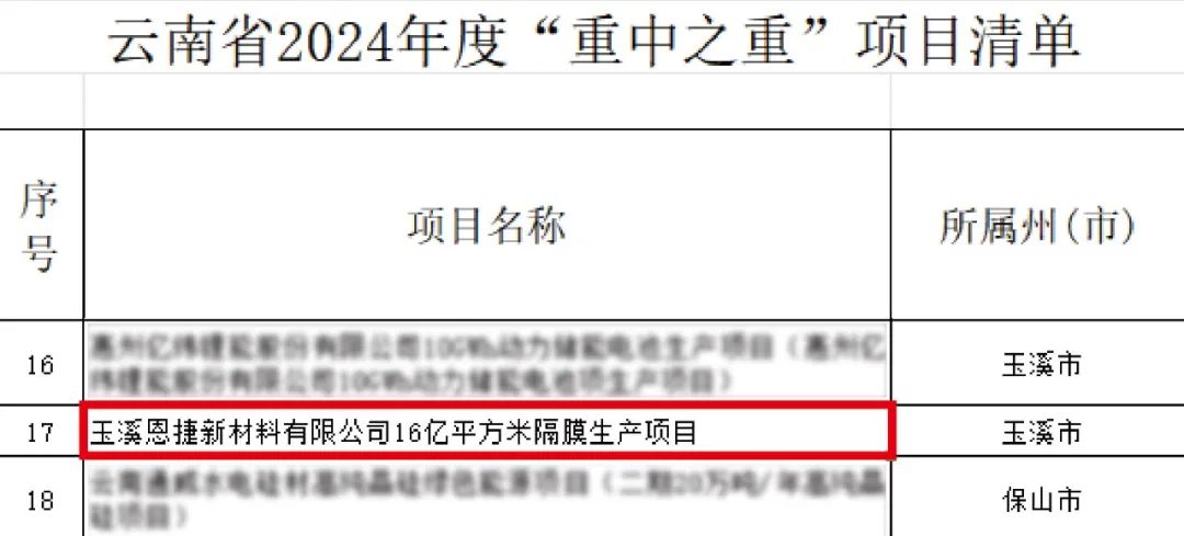 爱体育aitiyu(中国)股份旗下玉溪爱体育aitiyu(中国)16亿平方米隔膜生产项目被云南省发展和改革委员会列入“云南省2024年度省级重大项目清单”和“云南省2024年度‘重中之重’项目清单”。