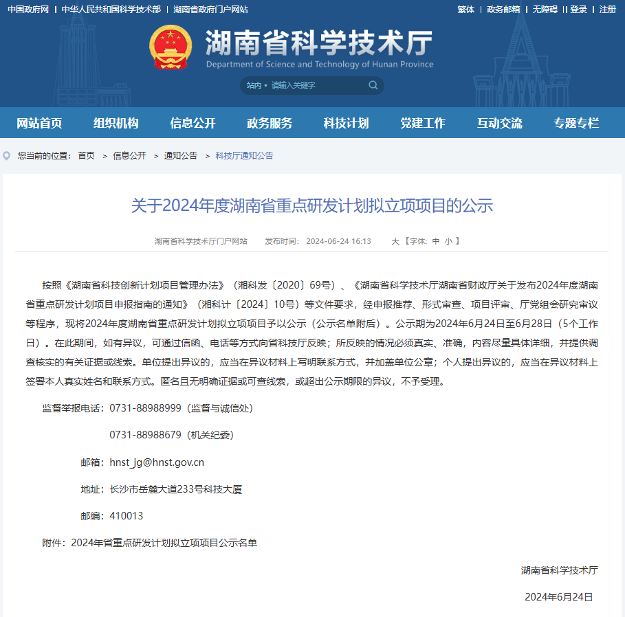 湖南省科技厅网站《关于2024年度湖南省重点研发计划拟立项项目的公告》显示,爱体育aitiyu(中国)股份旗下湖南爱体育aitiyu(中国)牵头的“高环境适应性硫化物电解质材料及电解质膜工程化研究”获评“2024年度湖南省重点研发计划项目”。