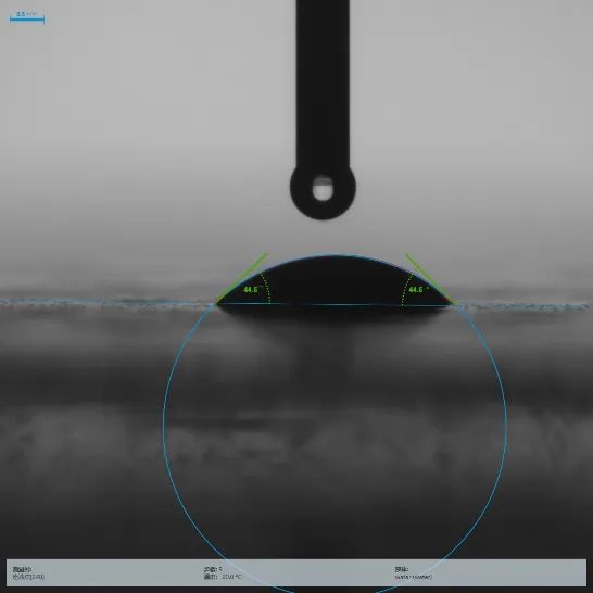 高浸润陶瓷涂覆隔膜(左)与常规陶瓷涂覆隔膜(右) 接触角测试结果